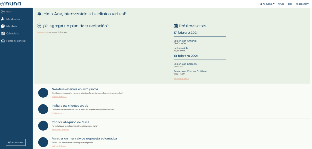 Si eres psicólogo y buscas un software para consultorios psicológicos, puedes valorar lo que te ofrece Nuna, ya que está diseñado exclusivamente para expertos en salud mental. Además, es un software sencillo, fácil de utilizar y completamente gratuito.