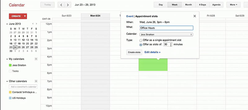 - Posibilidad de bloquear tiempo en el calendario para vacaciones y tiempo libre