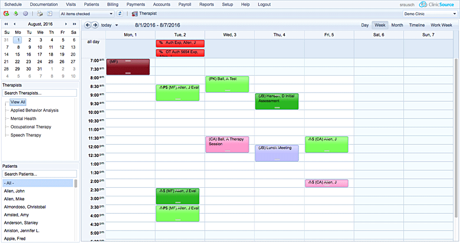 ClinicSource es un software de gestión en la nube que ayuda a los terapeutas con la documentación y la programación. La plataforma tiene un registro médico electrónico donde se pueden encontrar las facturas, reclamaciones de seguros, historia clínica y notas actualizadas. El paciente también puede acceder al portal de ClinicSource para consultar su historia clínica.