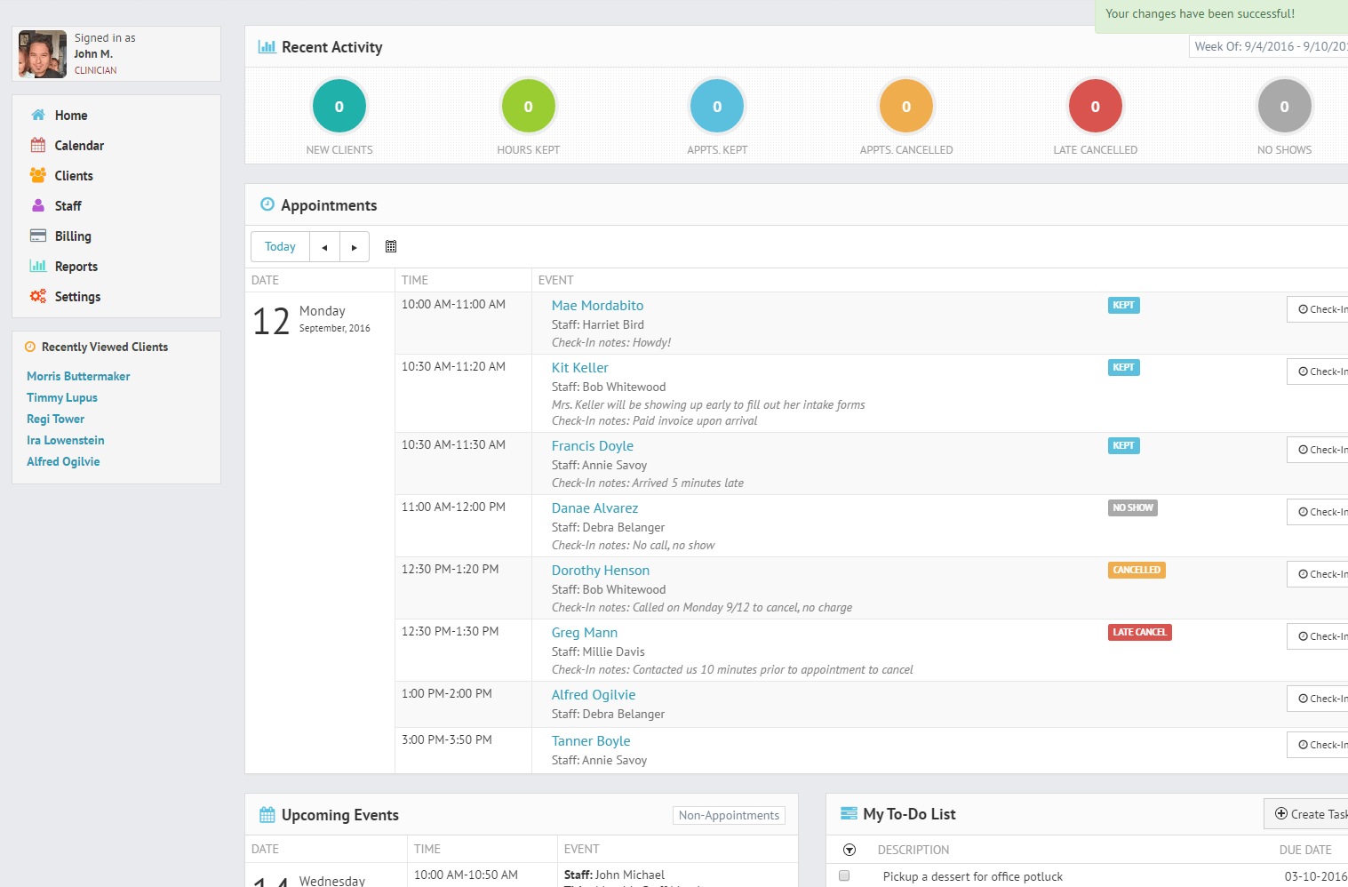 A veces, con tantas tareas administrativas, a los terapeutas se les hace difícil mantener la organización y estar presentes en las sesiones con los clientes. Cada reserva de un cliente trae consigo varias otras tareas como la programación, la documentación apropiada, el seguimiento de los pacientes, la facturación y mucho más. Los software de gestión de clínicas permiten a los terapeutas organizarse y estar al día, y a no olvidar ninguna parte del proceso.
